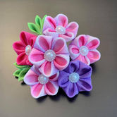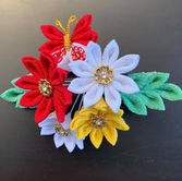 Tsumami-zaiku are traditional Japanese folded fabric flowers. They are made pinching silk cloth with tweezers, a technique that allows for intricate designs. Fumiko's one-of-a-kind hair accessories and broaches enhance your kimono's elegance and add a touch of personal style.